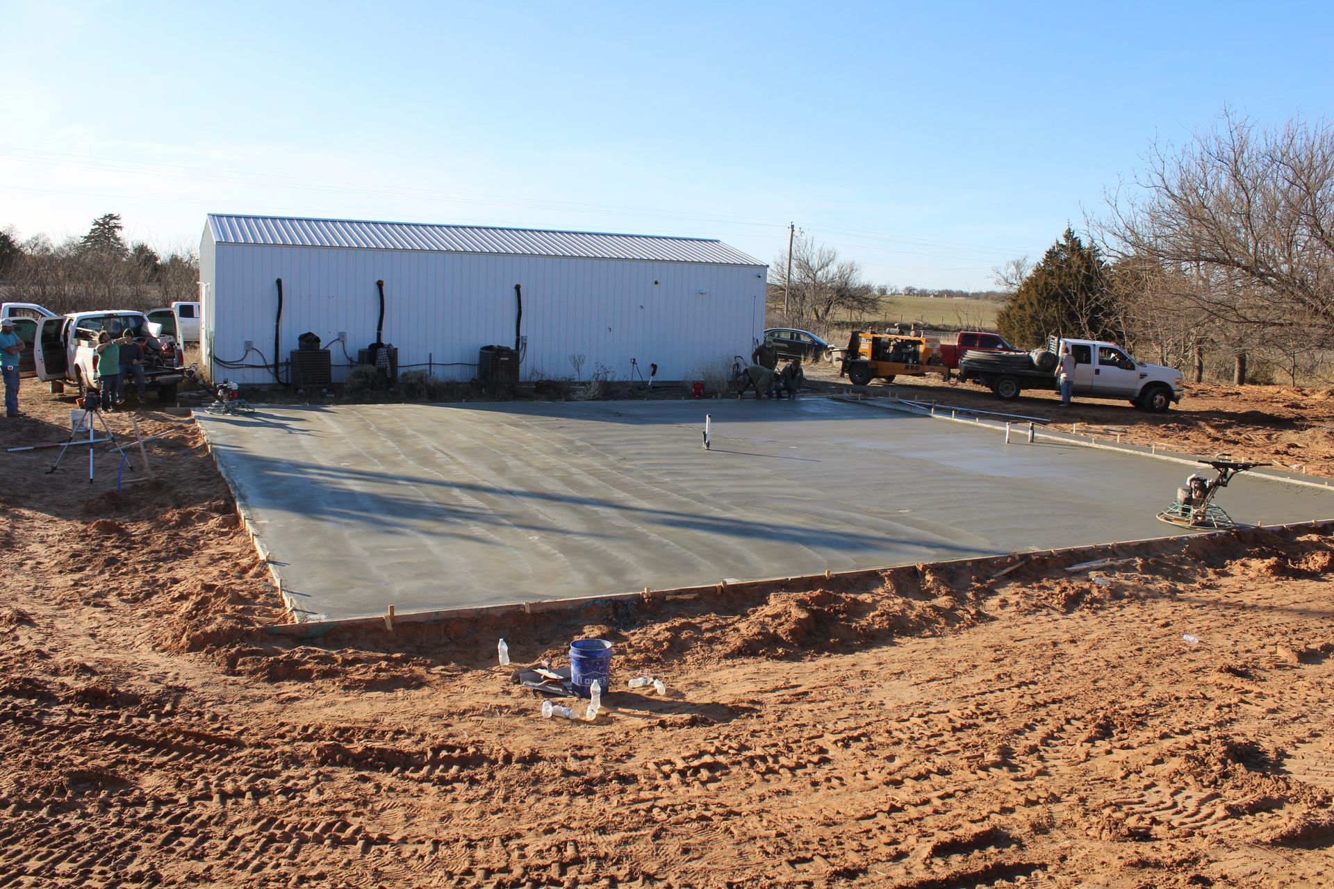 The work begins with site preparation that evaluates soil conditions, drainage patterns, and the load-bearing requirements of your structure. Excavation establishes the footprint and depth of the foundation according to project specifications and local code. Forms are built to the exact dimensions provided by your plans, and reinforcement such as rebar is placed to add tensile strength and prevent cracking under load. Concrete is poured to the correct thickness and cured under controlled conditions to reach full strength. The foundation is built to handle the weight of framing, roofing, and finishes, and to resist movement caused by Oklahoma's expansive clay soils and seasonal moisture changes.